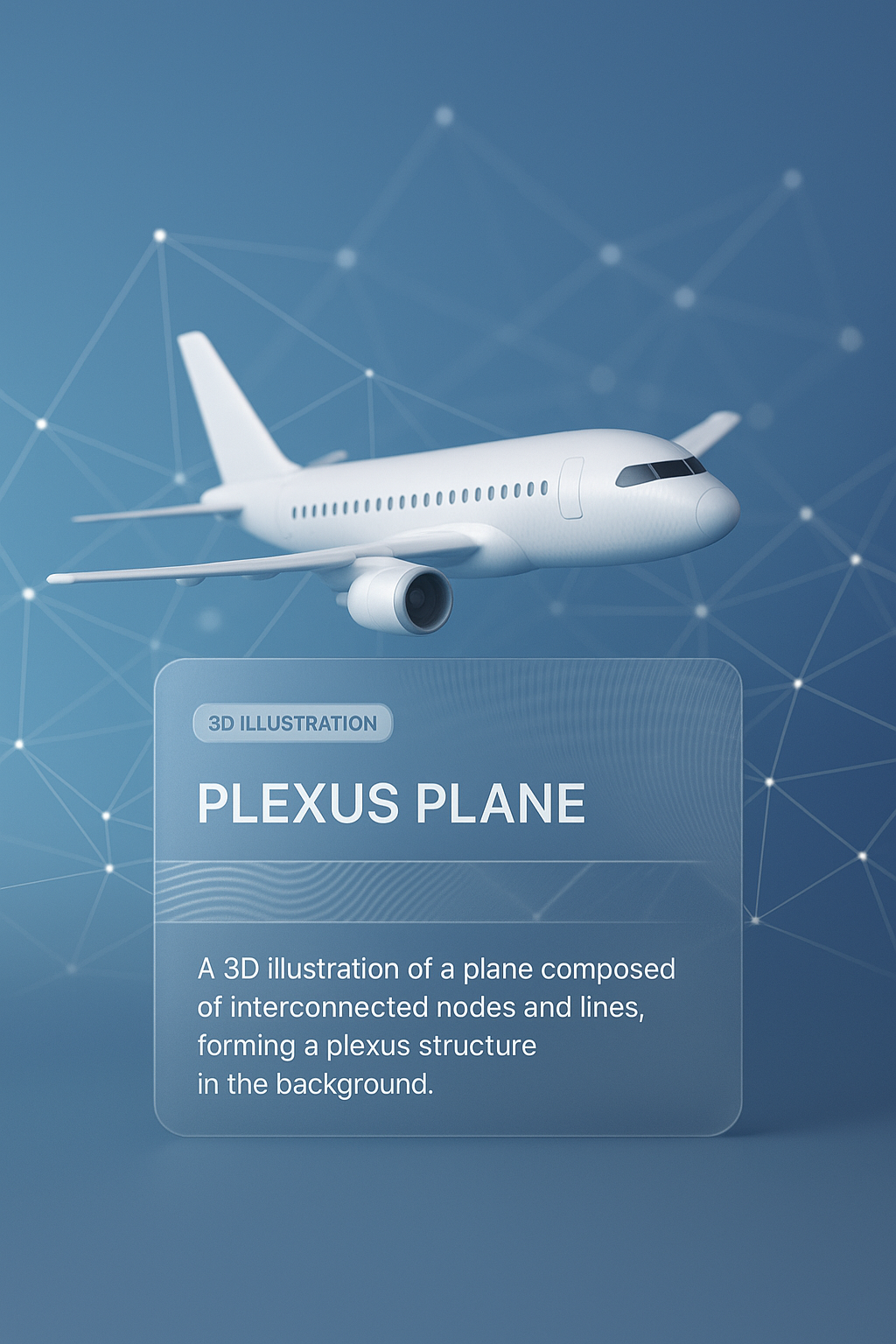 /Collection: /by davooda/Type: PNG/This image features a 3D illustration of a plane composed of interconnected nodes and lines, set against a smooth gradient background. A transparent text block provides additional context.