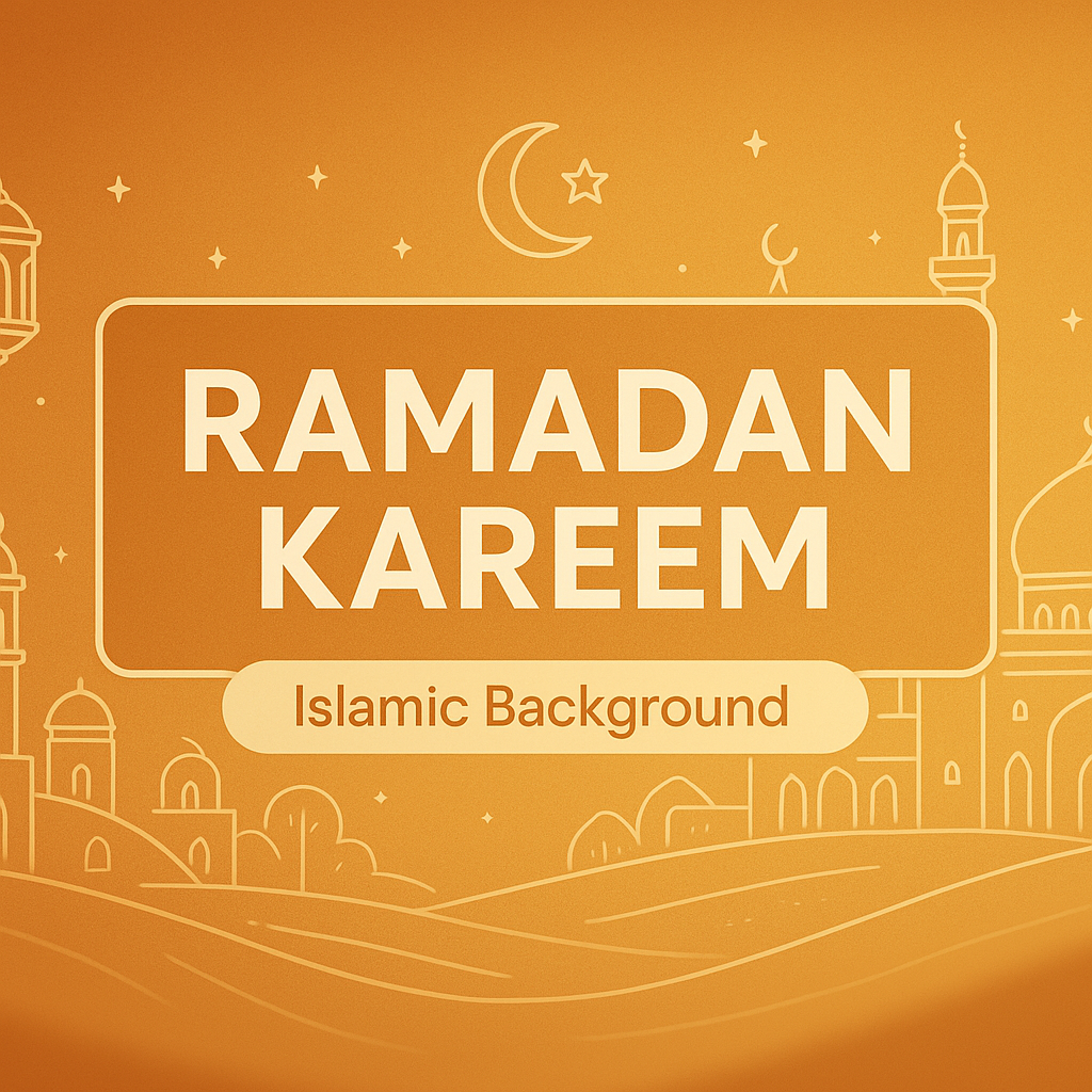 /Collection: /by davooda/Type: PNG/Vibrant and warm Islamic-themed background designed for Ramadan, featuring mosque silhouettes and crescent moons, ideal for social media posts or event promotions.