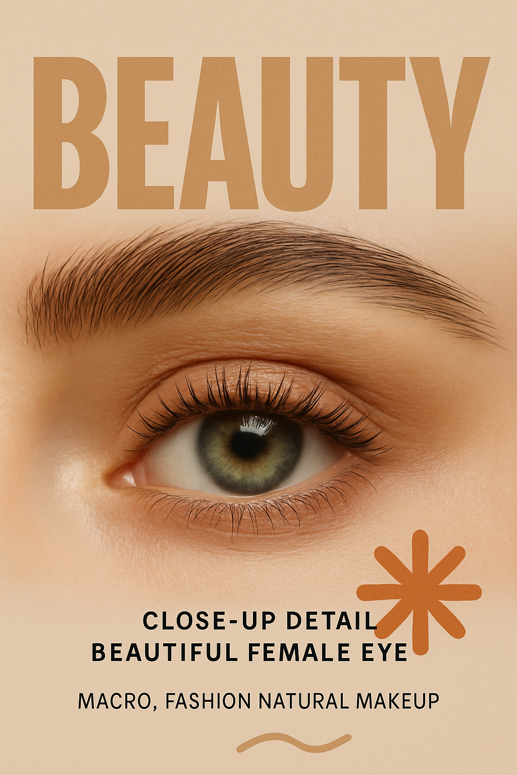 A macro shot highlighting a beautifully made-up female eye, showcasing natural makeup in a soft, elegant design. Ideal for beauty and fashion promotions.