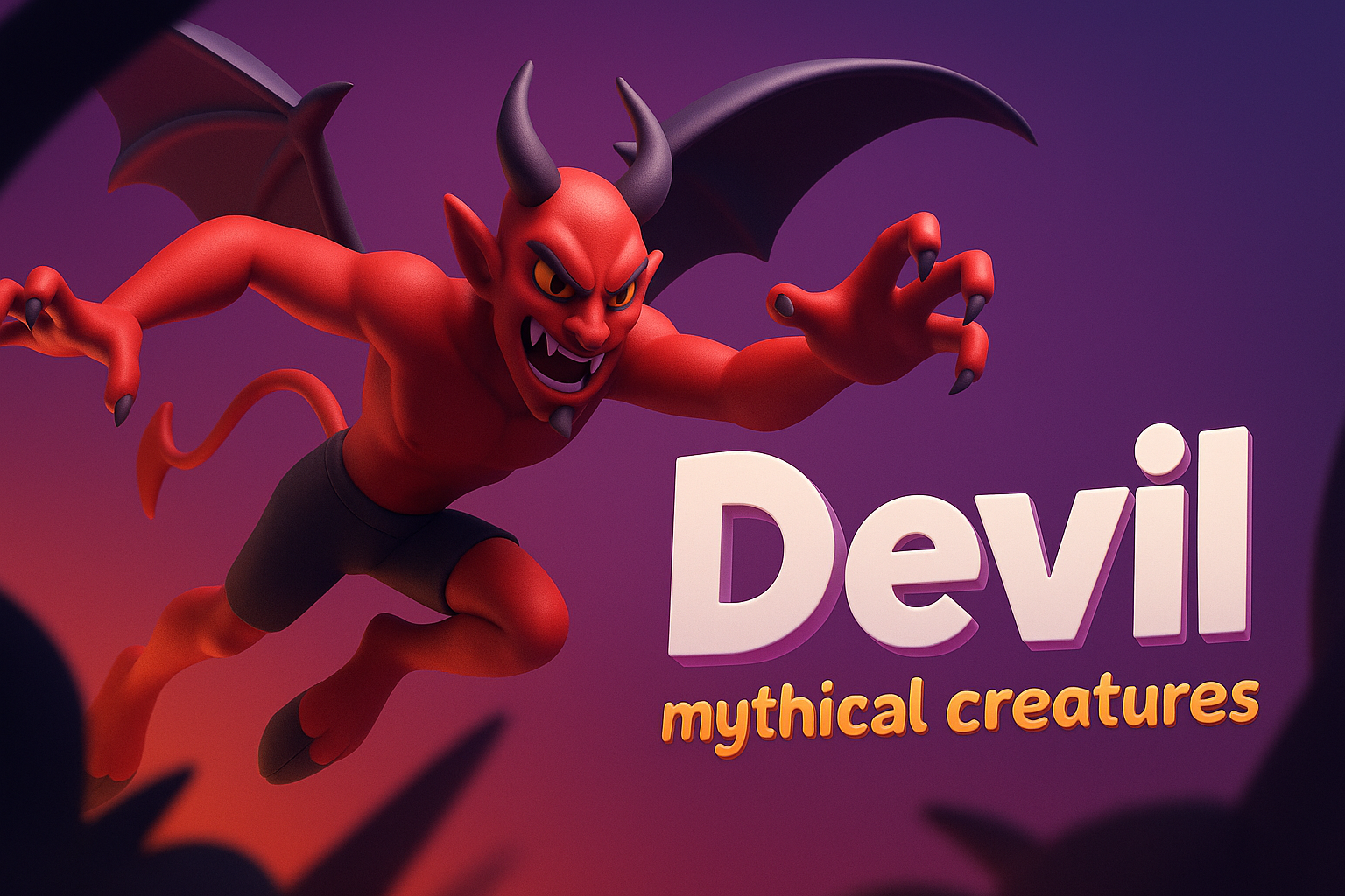 /Collection: /by davooda/Type: PNG/This image features a 3D rendering of a dynamic devil character mid-action. The character is vividly colored against a smooth gradient background, emphasizing movement and energy.