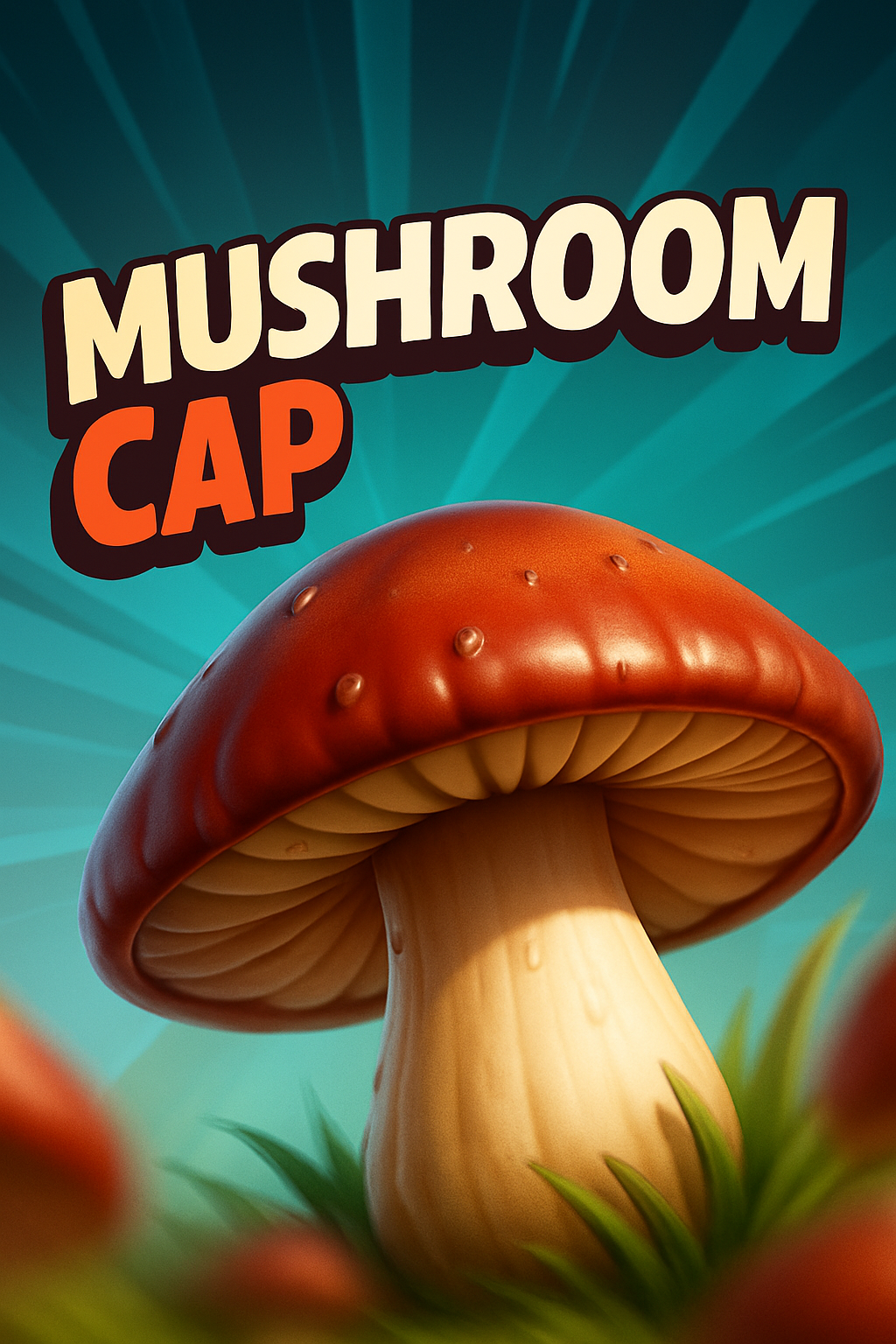 Dynamic Mushroom Cap Illustration with Bold Typography