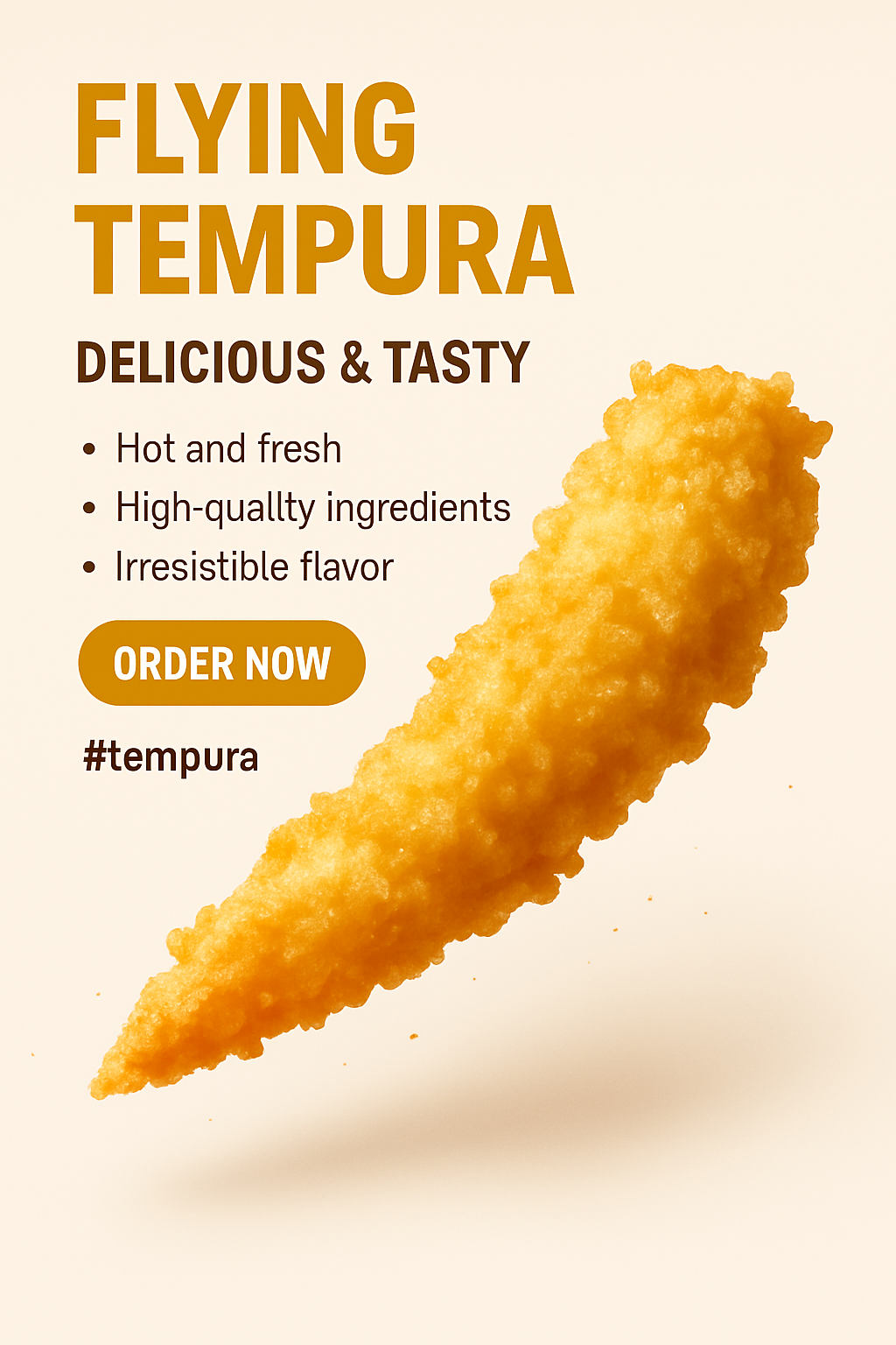 Promotional Graphic for Tempura Dish Featuring Bold Typography
