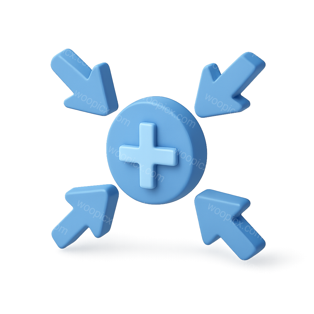 3D Arrows Pointing Inward with Central Plus Icon
