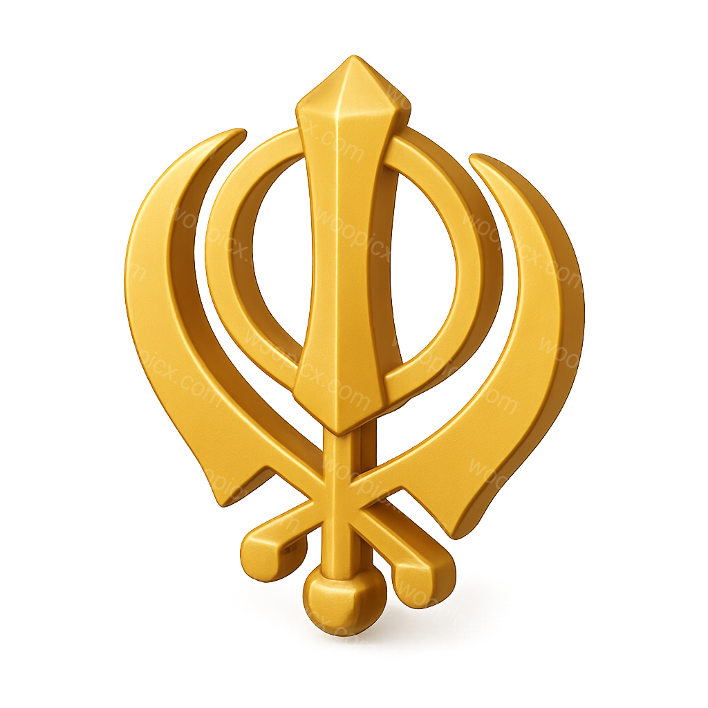 A striking 3D representation of the Khanda symbol, featuring a golden finish and volumetric depth. The icon showcases the traditional elements in a modern design.