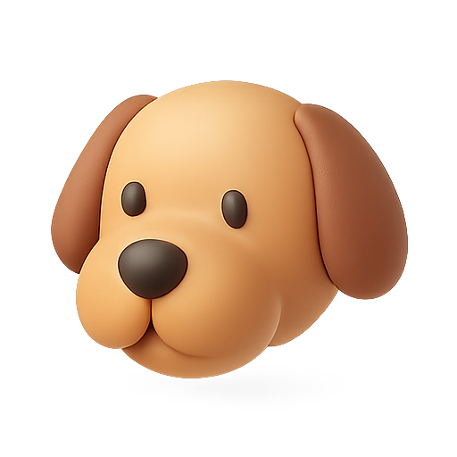 A playful 3D-rendered dog emoji icon with soft, rounded features, ideal for digital communication and social media applications. Perfect for pet-related content.