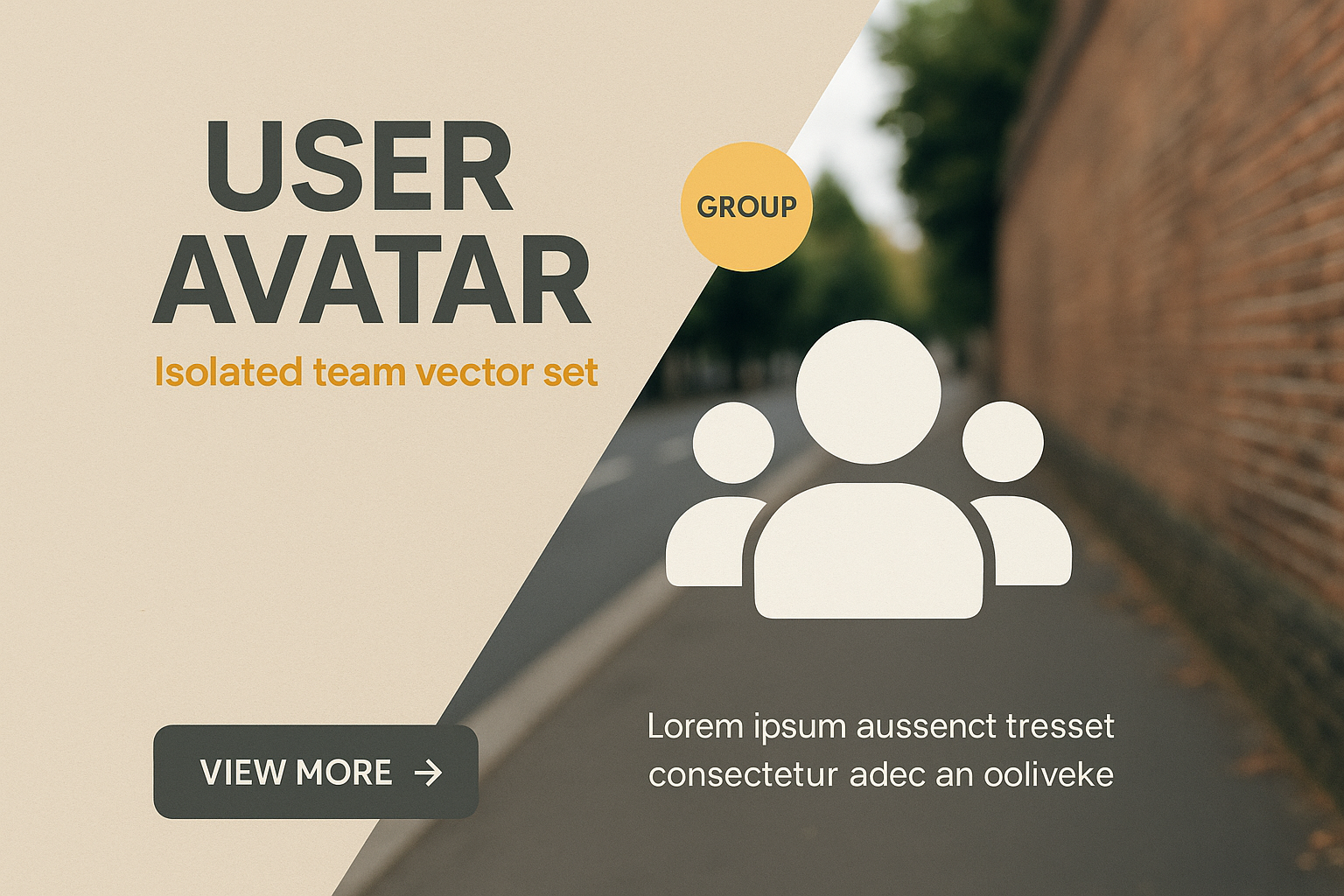 A visually appealing design showcasing a user avatar concept with a modern aesthetic. The layout includes geometric shapes and a clear hierarchy, focusing on teamwork and social connectivity.