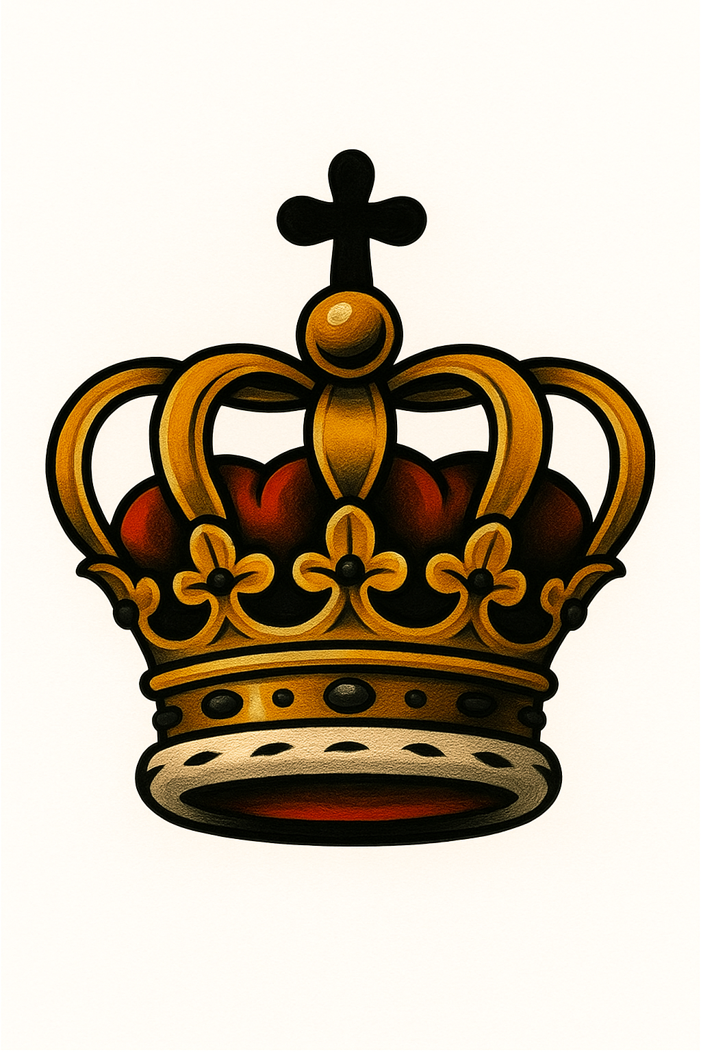 Illustrative Tattoo-Style Artwork Featuring a Crowned Female Figure