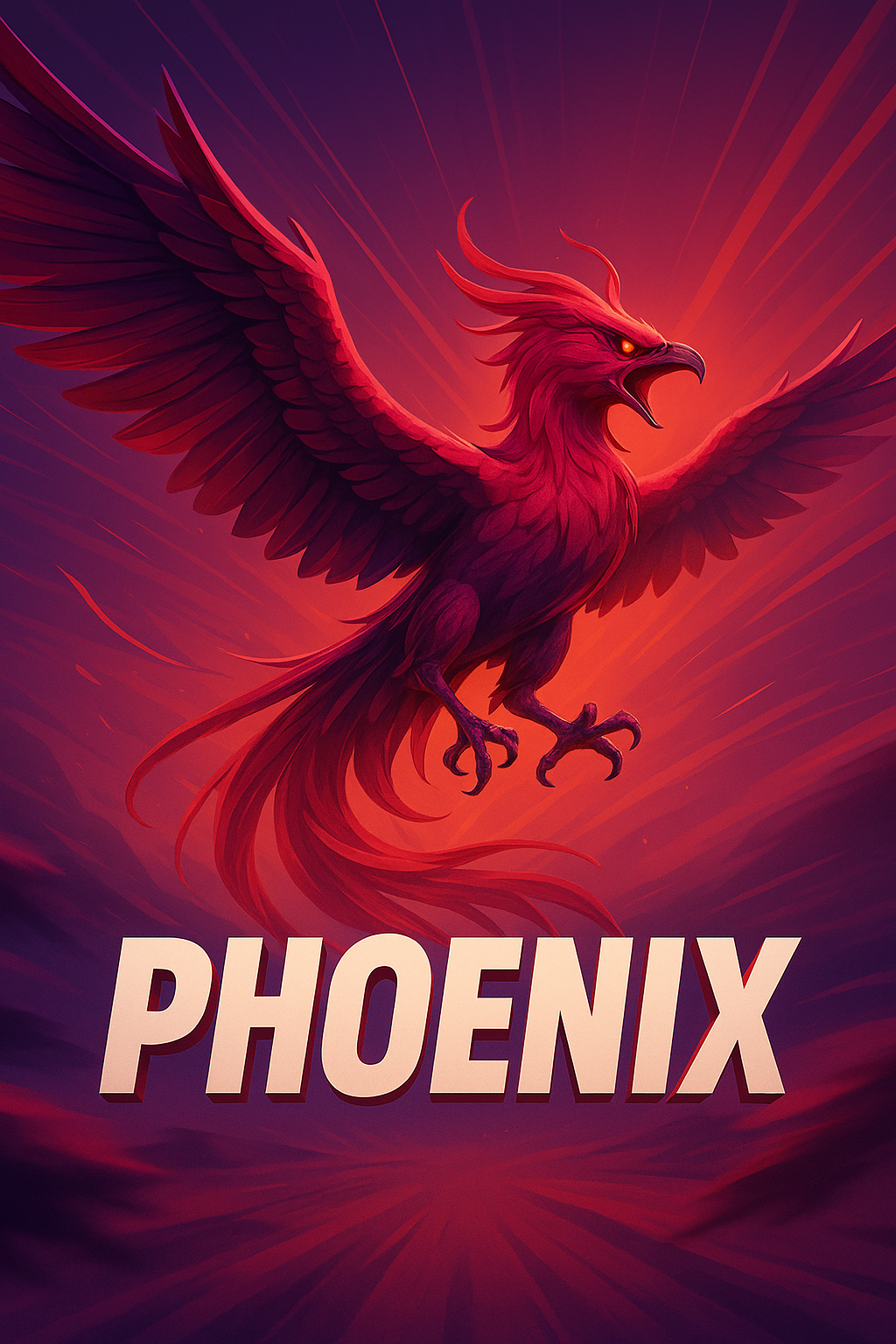 Dynamic Phoenix Illustration with Vivid Colors and Bold Typography
