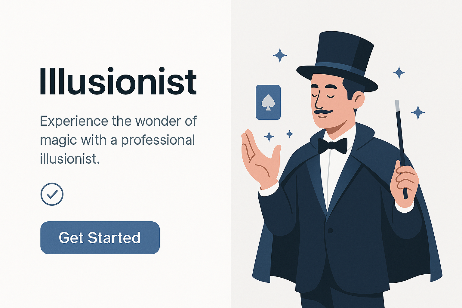 /Collection: /by davooda/Type: PNG/A clean and professional landing page design featuring an illusionist. The left side includes engaging text and a call-to-action button, while the right showcases a dominant illustration.