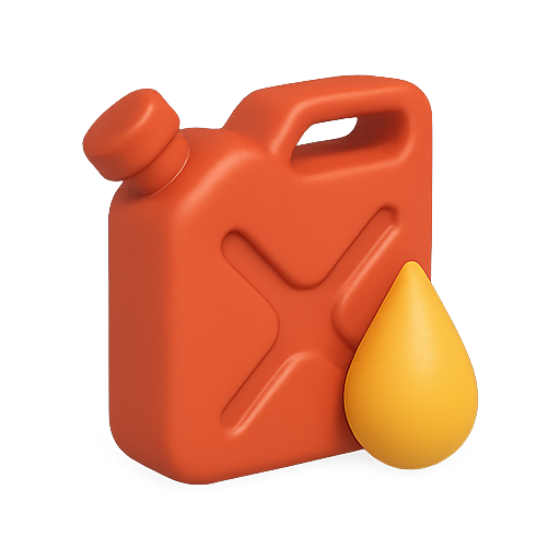 A stylized 3D illustration of a red fuel canister alongside a yellow droplet, perfect for automotive or fuel-related graphics. The simplistic design adds a modern touch.