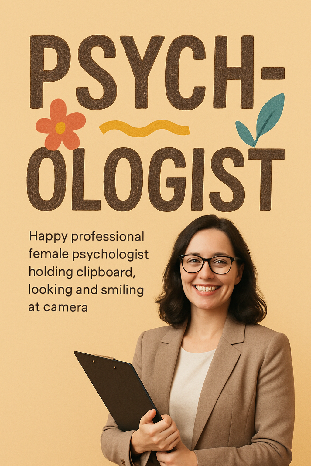 /Collection: /by davooda/Type: PNG/A friendly and approachable image of a female psychologist holding a clipboard, set against a warm background. Ideal for mental health promotion and professional psychology-related content.