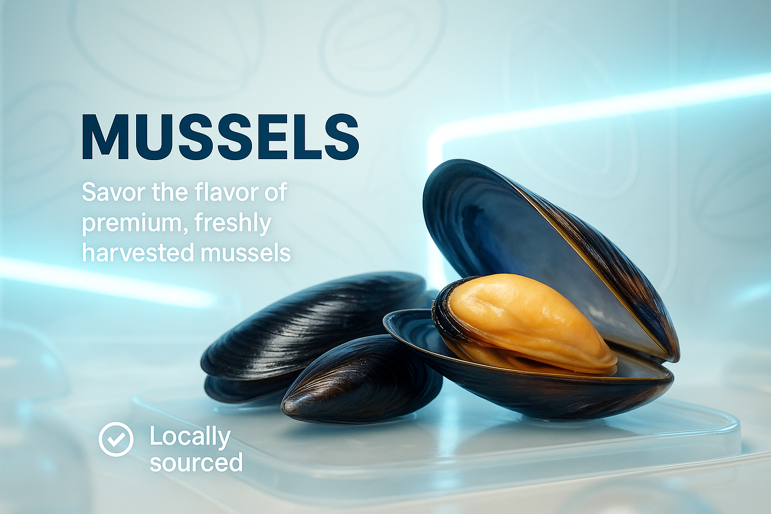 Premium Fresh Mussels Display with Modern Design Elements
