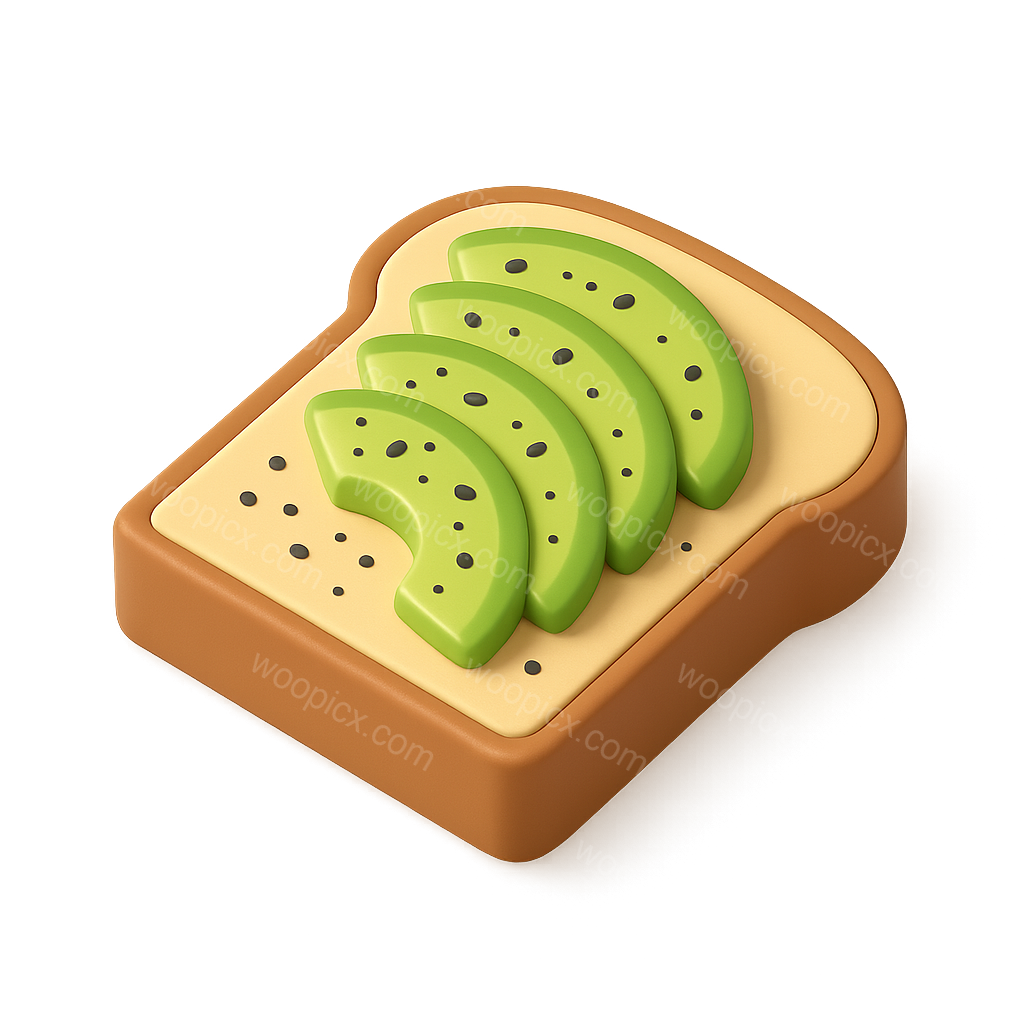 Stylized 3D Avocado Toast Icon with Volumetric Feel