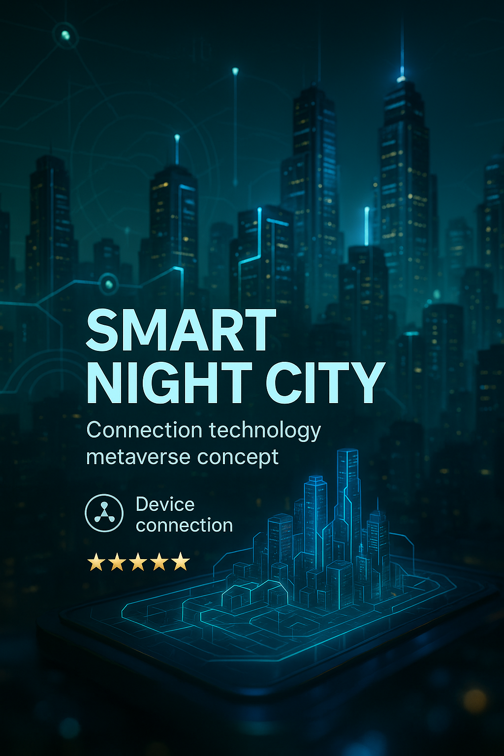/Collection: /by davooda/Type: PNG/A visually stunning digital illustration depicting a smart night city with advanced technology and device connectivity, ideal for tech-related content and presentations.