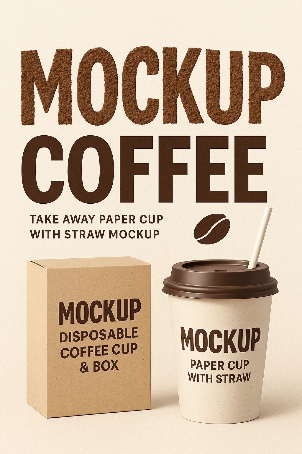 /Collection: /by davooda/Type: PNG/Stylish mockup showcasing a disposable coffee cup and box, ideal for branding and packaging presentations. Clean design with minimalist elements to highlight product.