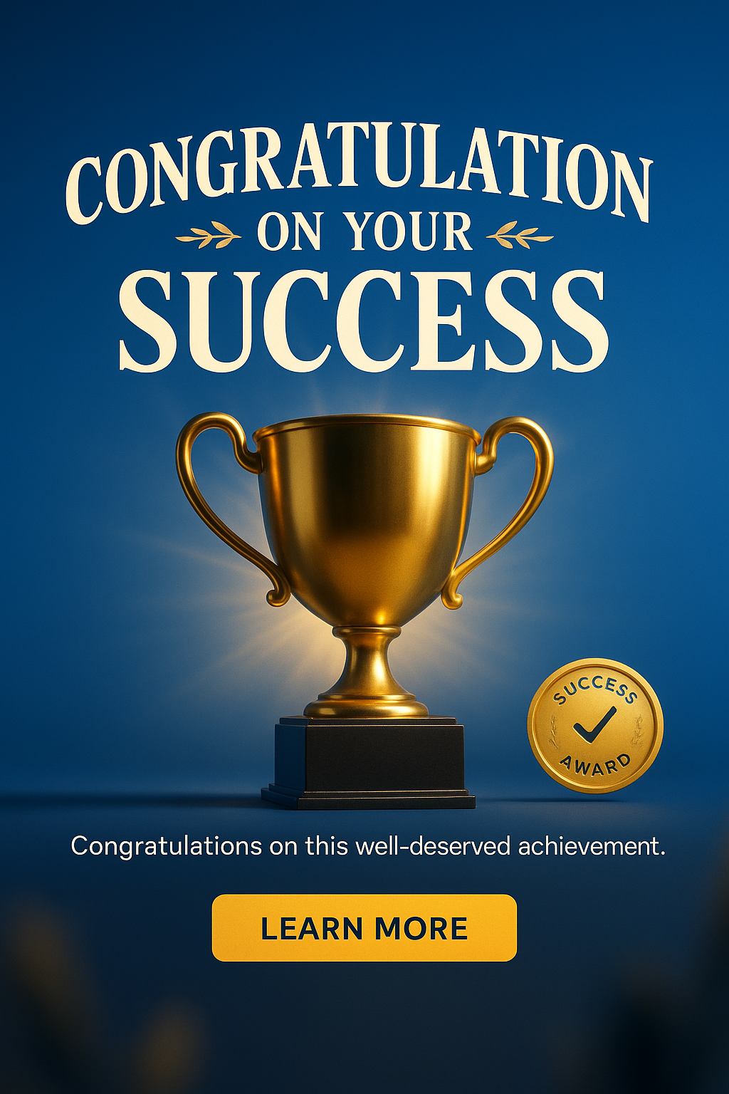 /Collection: /by davooda/Type: PNG/This image features a golden trophy against a blue background, celebrating success. It is designed for motivational purposes, suitable for social media or award announcements.