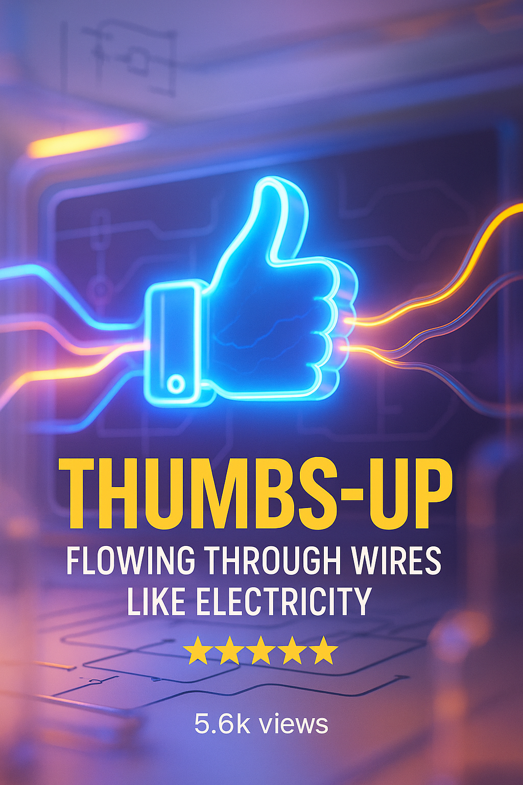 A modern graphic showcasing a glowing thumbs-up icon intertwined with electric wires, ideal for digital content promoting positivity and innovation.