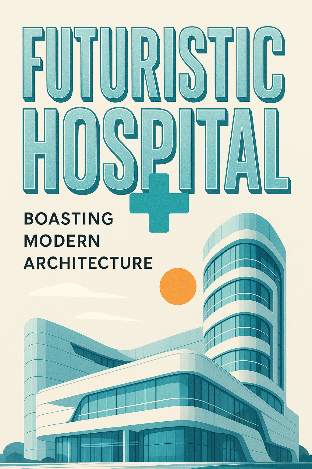/Collection: /by davooda/Type: PNG/Stylized illustration of a futuristic hospital featuring modern architectural elements, ideal for promoting healthcare facilities or architectural innovations.