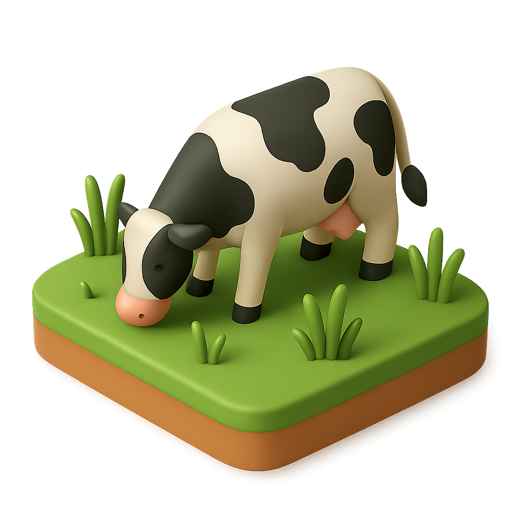 Stylized 3D Cow Icon Grazing in a Field
