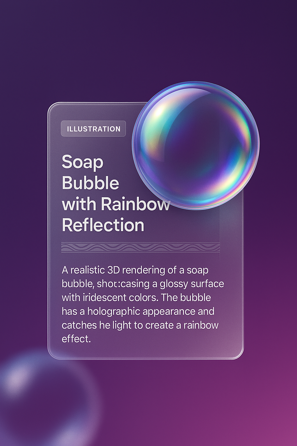 /Collection: /by davooda/Type: PNG/This image showcases a realistic 3D rendering of a soap bubble with a glossy surface and holographic effect. The bubble reflects light, creating a rainbow effect against a smooth gradient background.