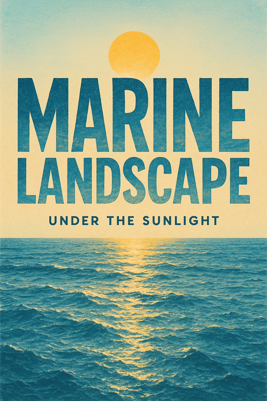 A visually striking illustration of a marine landscape under sunlight, featuring bold typography. Ideal for ocean-themed decor or promotional materials.