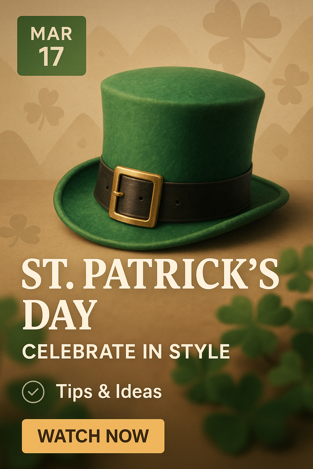 /Collection: /by davooda/Type: PNG/Festive promotional graphic featuring a green hat symbolizing St. Patrick's Day, with a focus on celebration tips and ideas. Ideal for social media or event marketing.