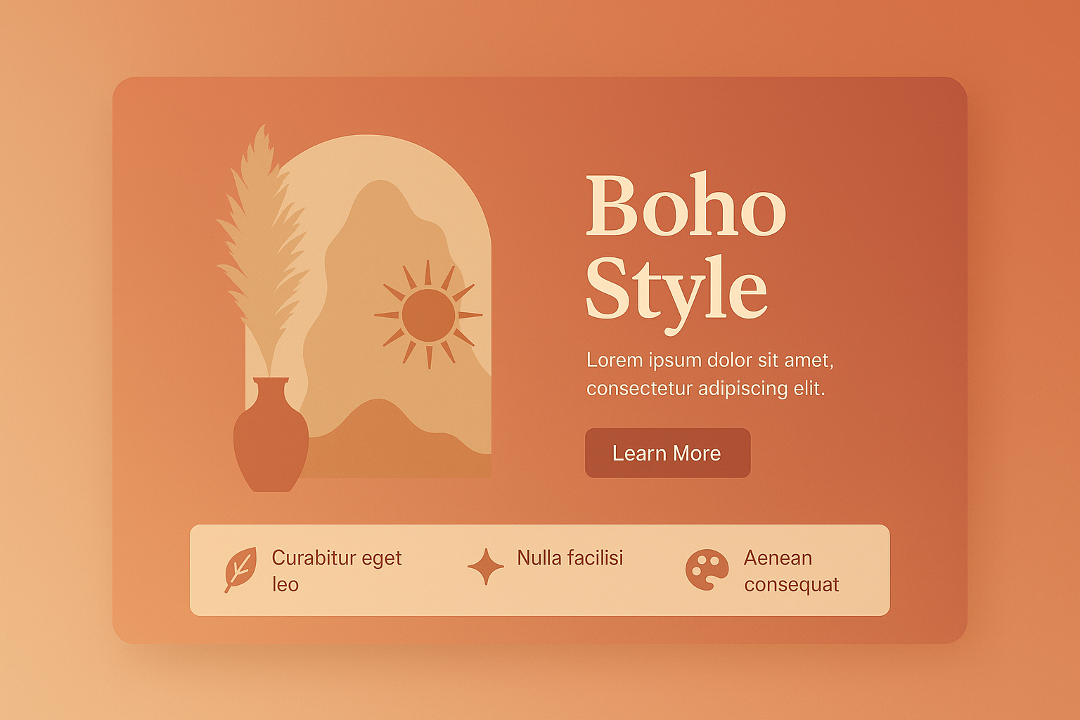 This is a visually appealing banner designed in a warm, earthy color palette, featuring bohemian elements. It serves as a promotional graphic aimed at lifestyle enthusiasts.