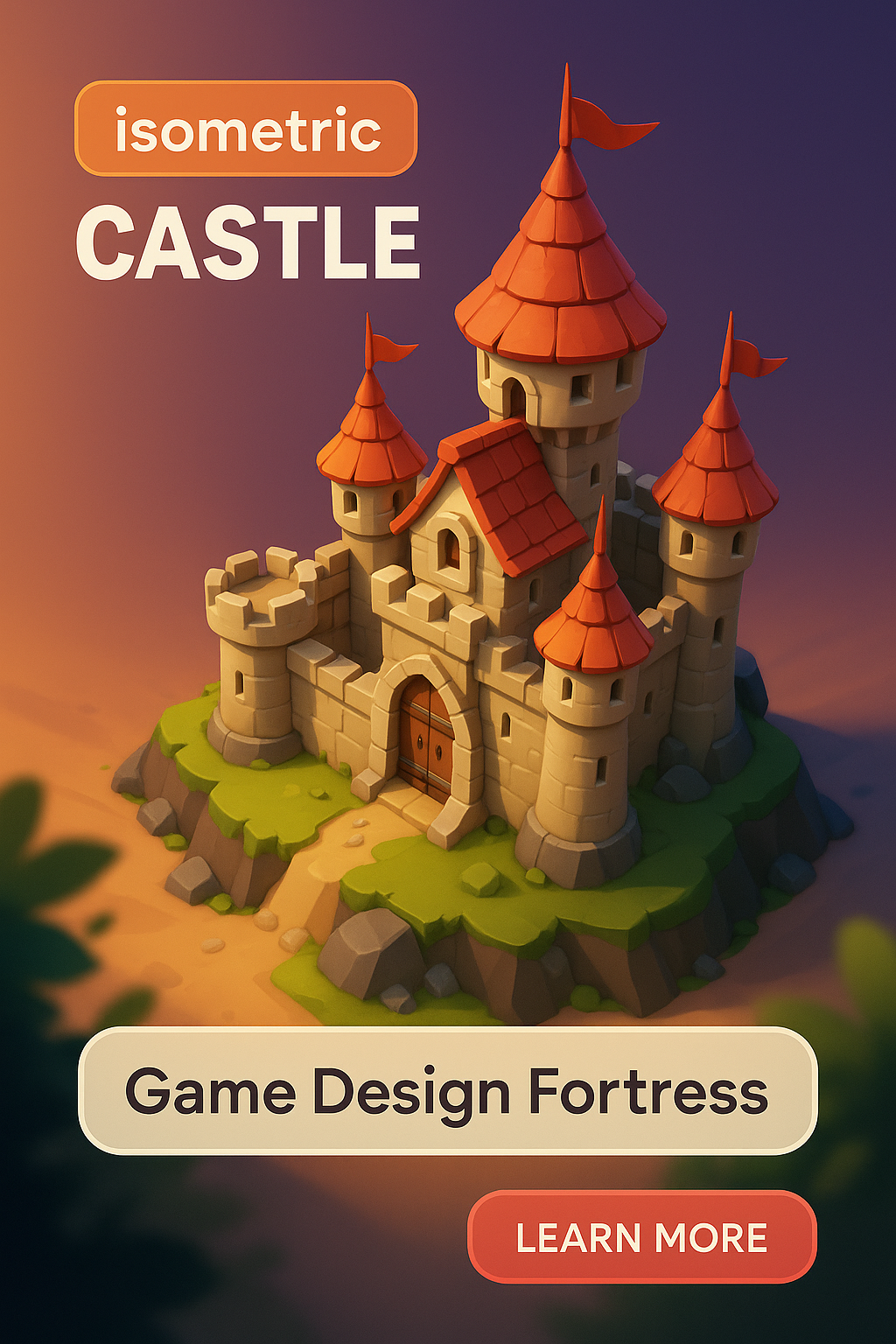 Isometric Castle Graphic for Game Design Promotion