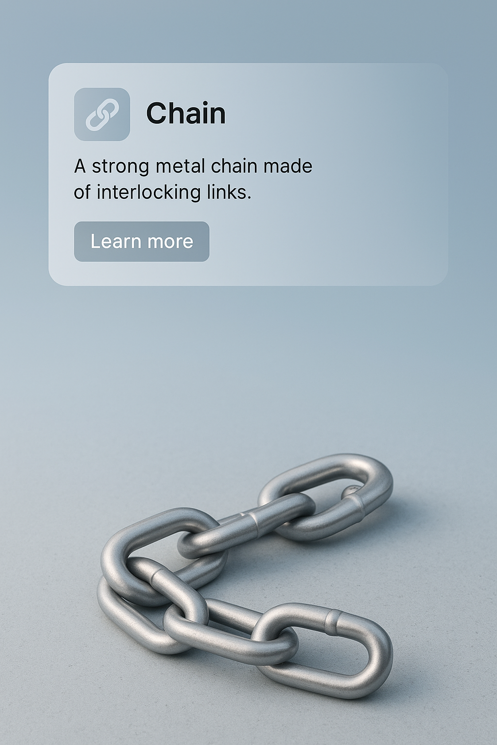 /Collection: /by davooda/Type: PNG/A realistic 3D representation of a metal chain made of interlocking links, set against a smooth gradient background. The image features a call-to-action button with descriptive text.