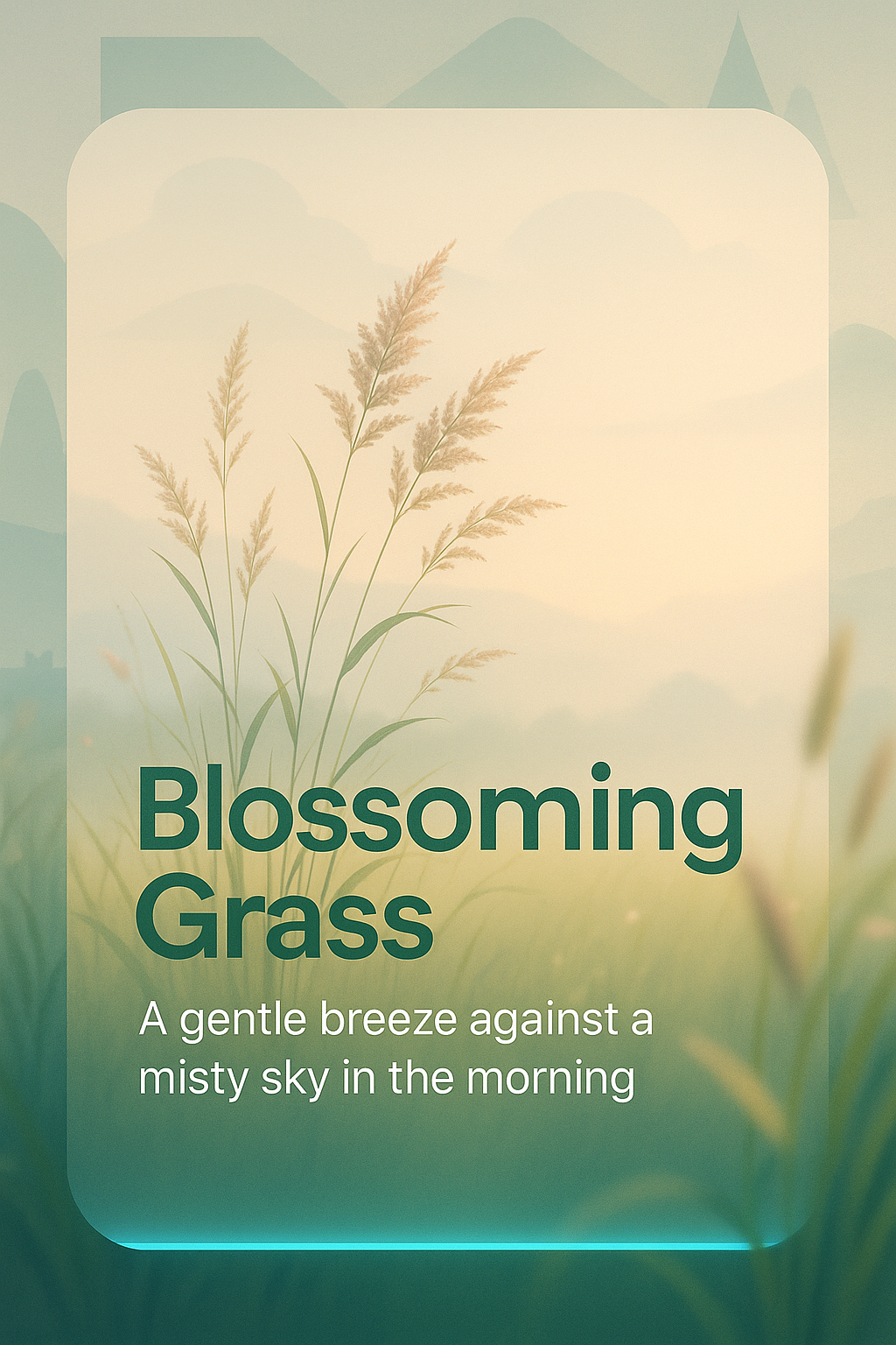 A tranquil digital artwork depicting blossoming grass against a misty sky, perfect for nature-themed projects or relaxation content.