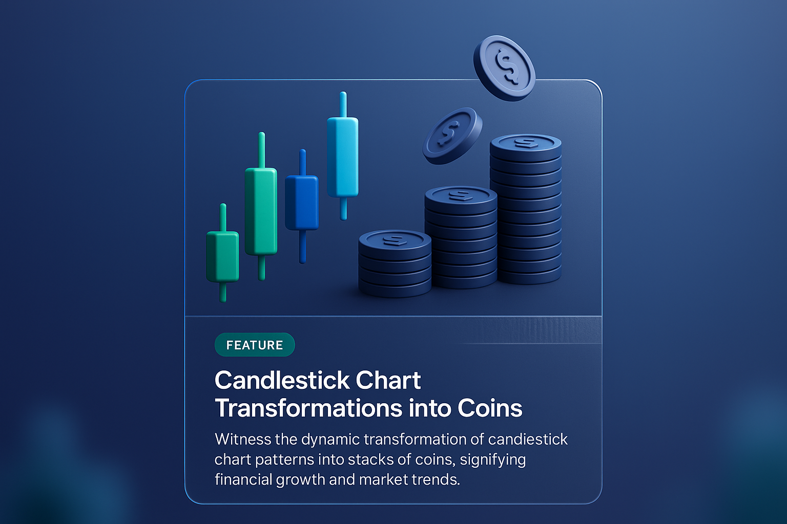 /Collection: /by davooda/Type: PNG/A visually striking 3D illustration showcasing the transformation of candlestick charts into stacks of coins, representing financial growth and market trends.