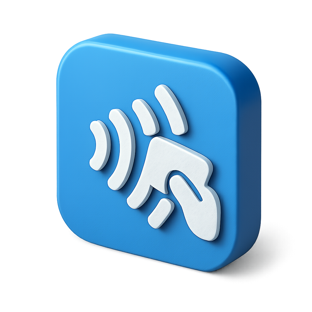 A visually appealing 3D NFC payment symbol, presented in a three-quarter view with a transparent background. The icon features a hand and wave design, showcasing a modern isometric style.