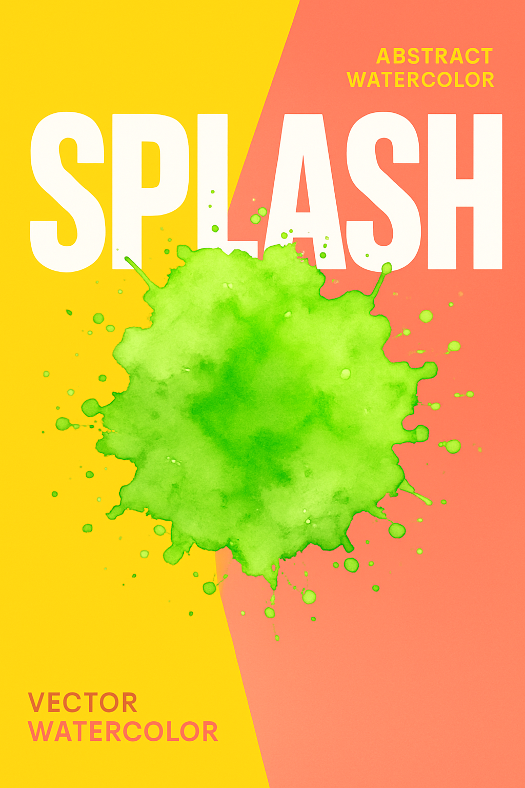 An abstract watercolor splash in vibrant salad color on a split background of bright yellow and pink. The playful design features bold typography, creating an energetic and modern feel.