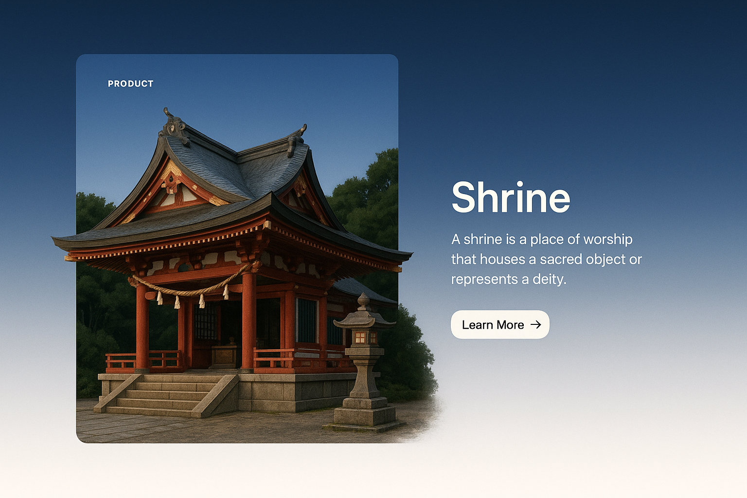 /Collection: /by davooda/Type: PNG/A visually appealing web illustration of a shrine with a gradient background. Features a small label, a concise header, a text block, and an action button for user engagement.