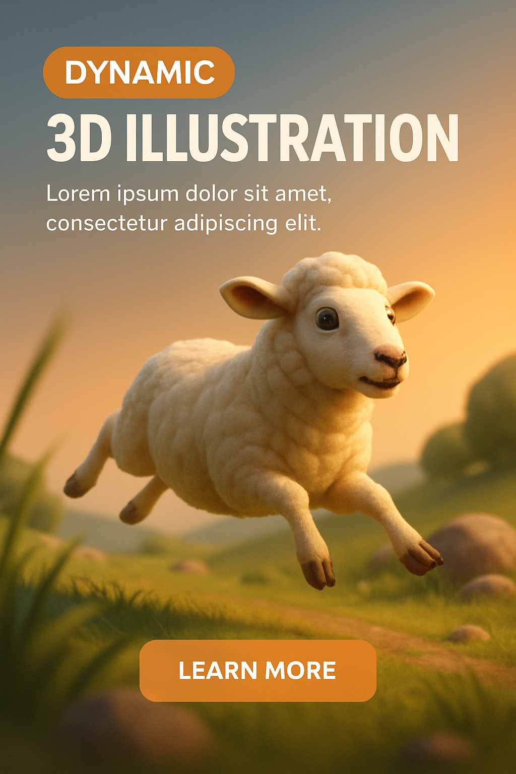A vibrant 3D illustration featuring a sheep in mid-leap, set against a soft, natural background. Ideal for engaging content in digital marketing and educational materials.