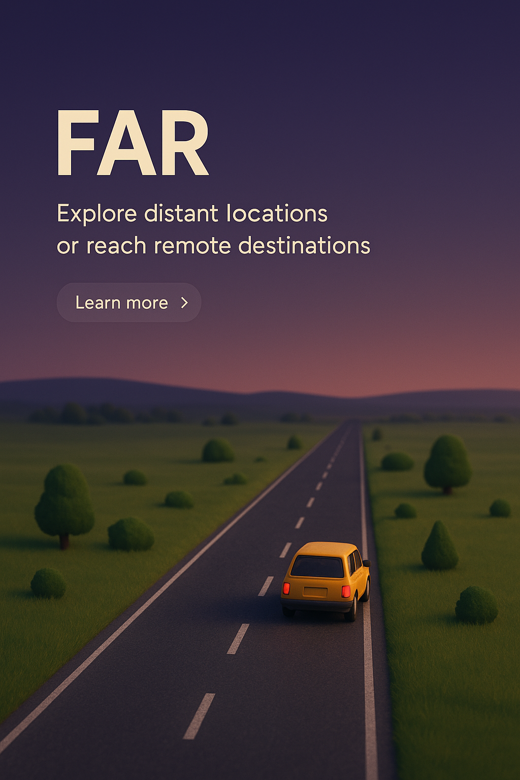 A visually engaging 3D scene showcasing a yellow car on a winding road, surrounded by a dark gradient background and lush green landscapes. The design features clear text elements inviting exploration.
