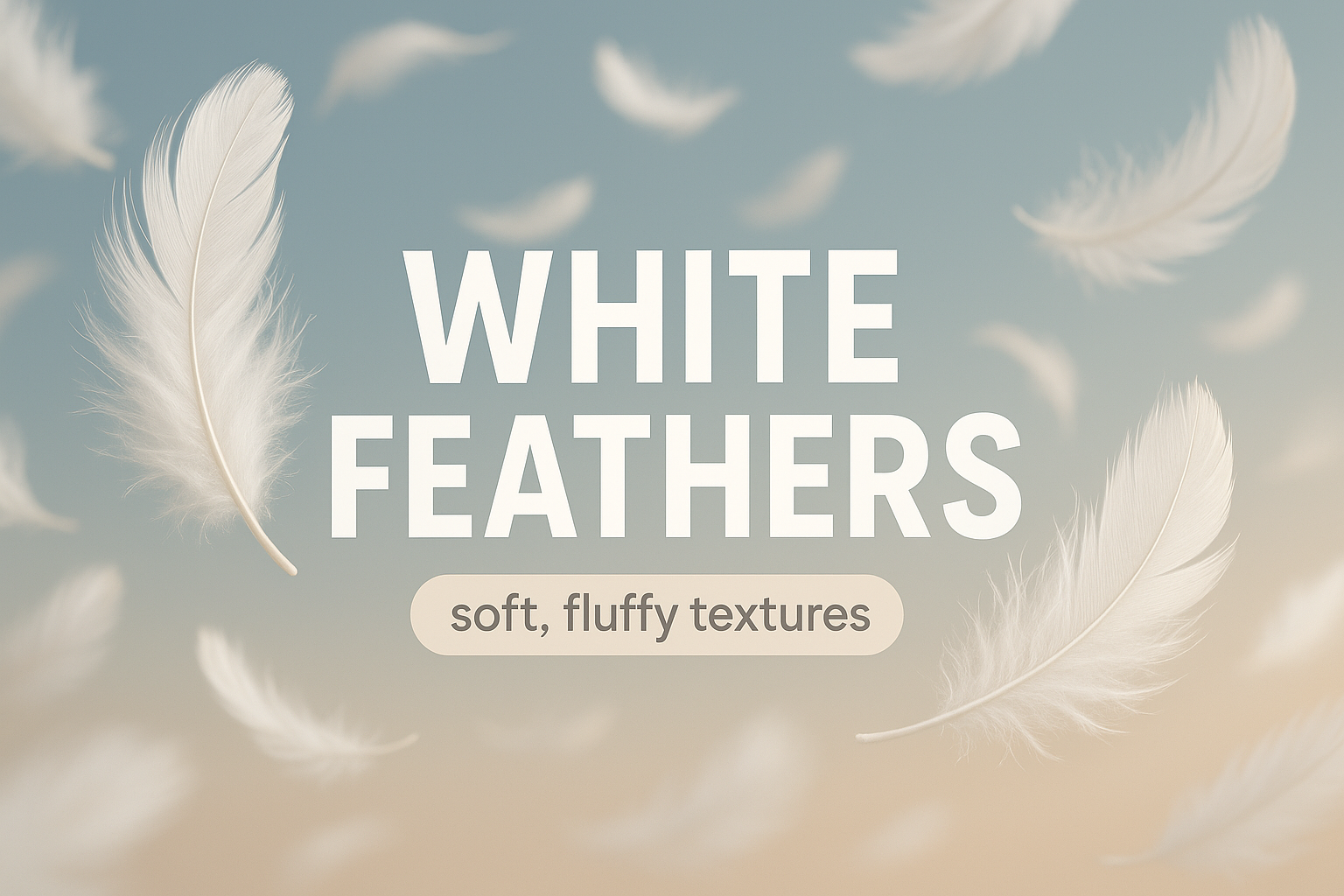 A serene graphic showcasing soft, fluffy white feathers against a gradient background, ideal for beauty, wellness, or nature-themed projects.