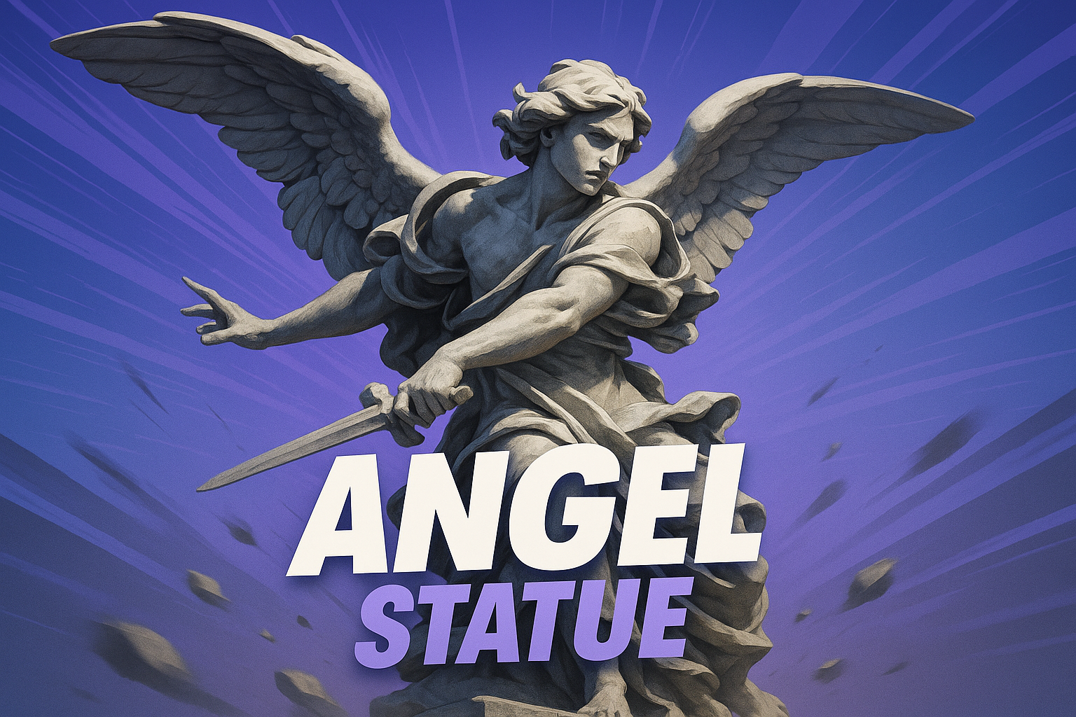 Elegant Angel Statue with Gradient Background and Text Overlay