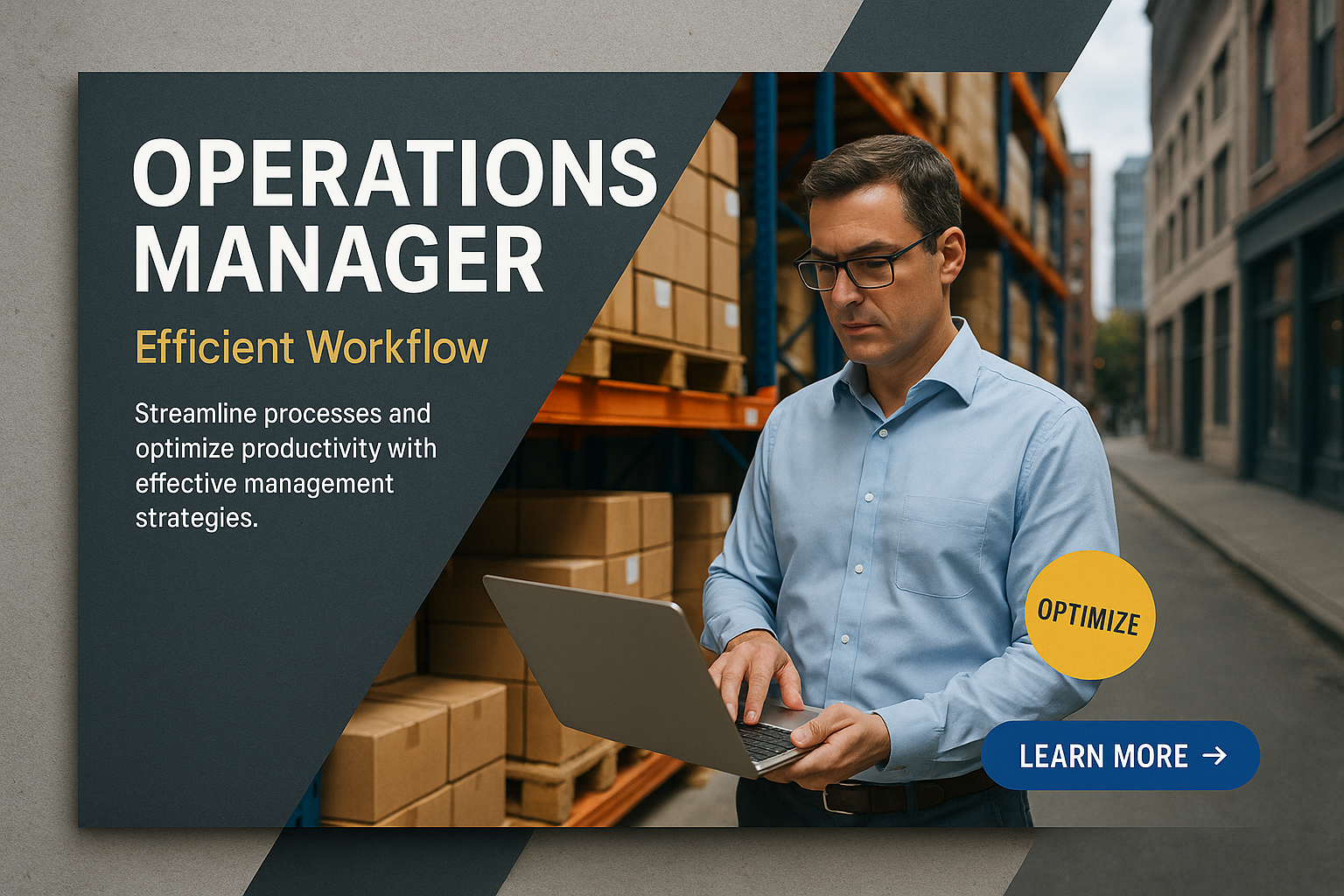 /Collection: /by davooda/Type: PNG/A professional design featuring a man working on a laptop in a warehouse setting. The layout includes a bold title, a subtitled text, and a call-to-action button, all with a layered composition.