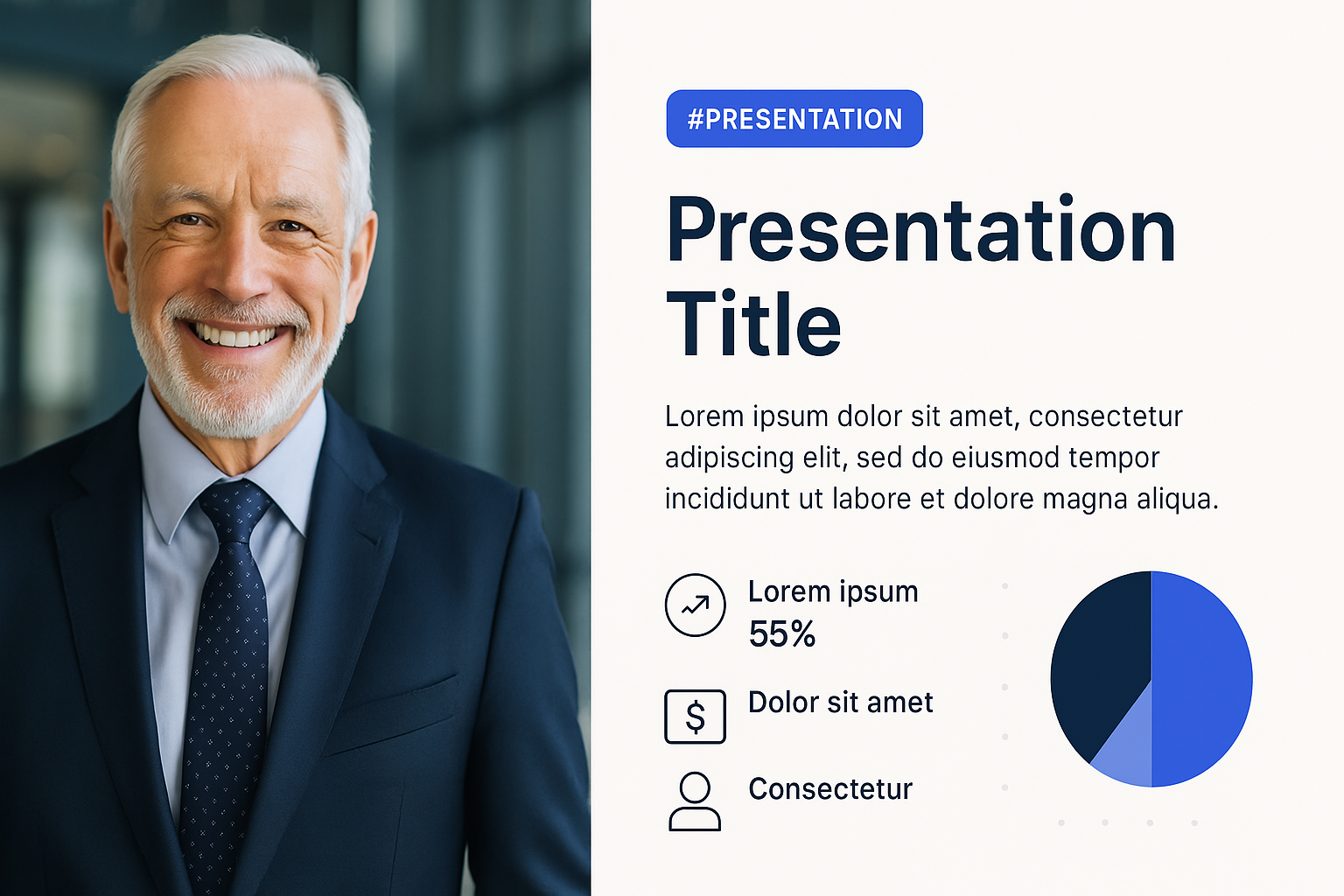 /Collection: /by davooda/Type: PNG/A polished presentation slide showcasing a professional speaker with engaging design elements and placeholder text, ideal for corporate or educational settings.