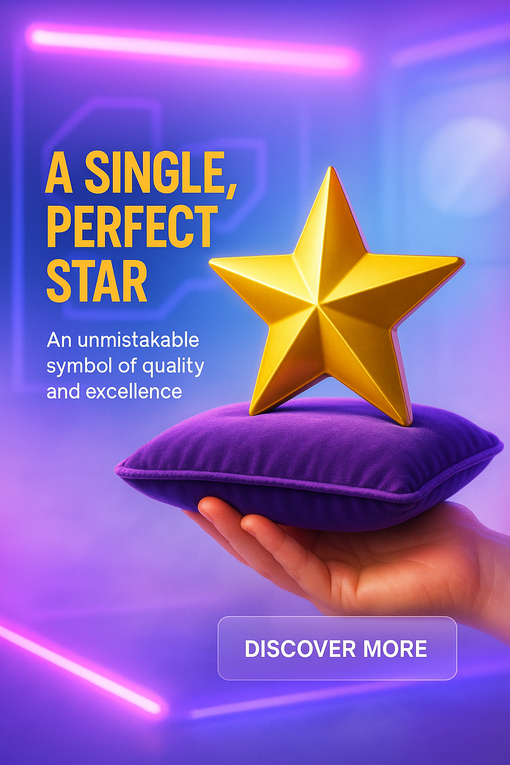 /Collection: /by davooda/Type: PNG/Vibrant promotional graphic showcasing a golden star resting on a plush cushion, symbolizing quality and excellence. Ideal for recognition or award-related content.