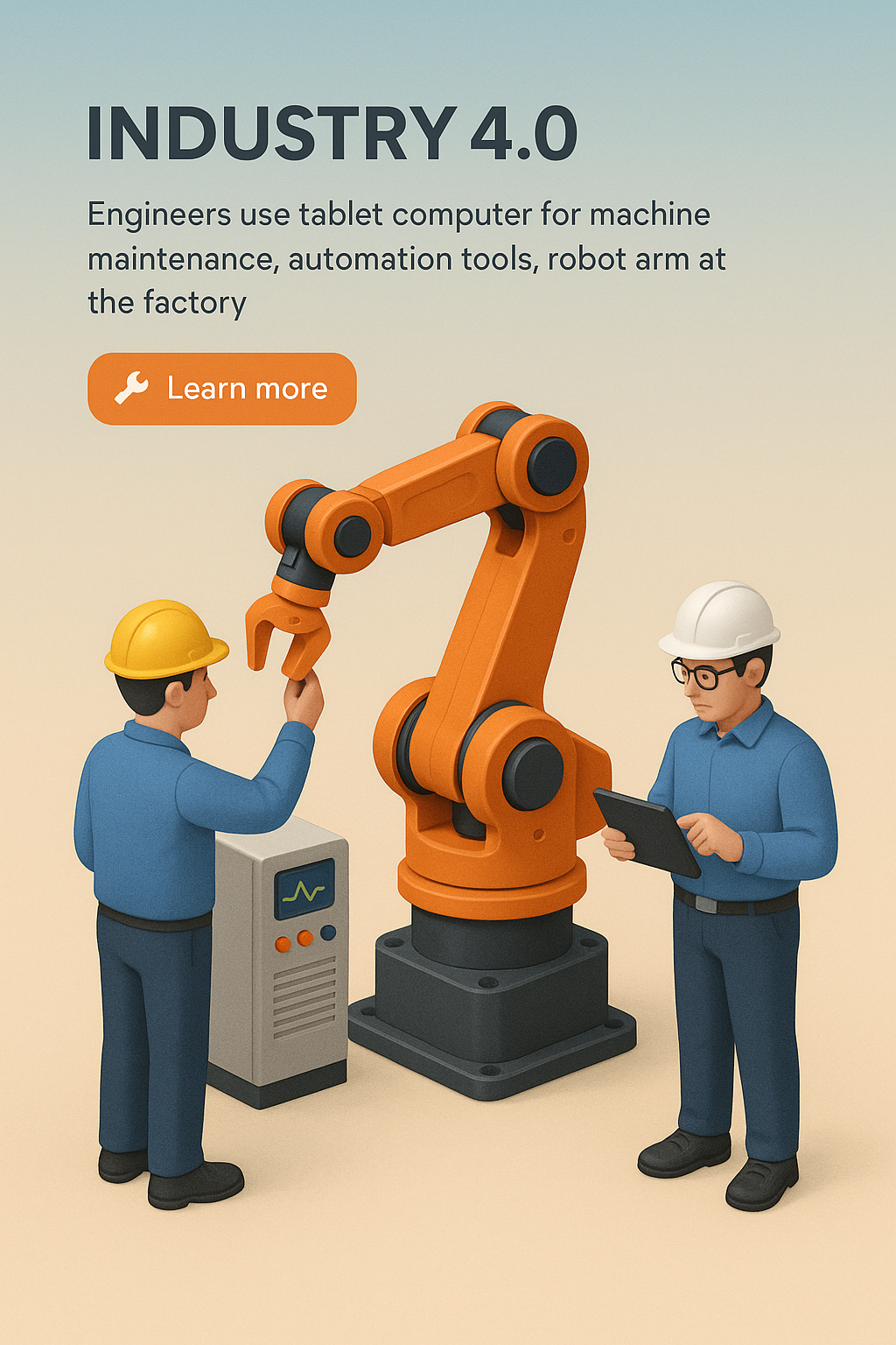 Industry 4.0 Robot Concept with Engineers and Automation Tools