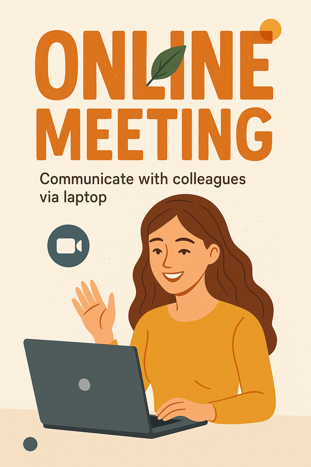 /Collection: /by davooda/Type: PNG/A vibrant digital illustration depicting a person engaging in an online meeting via a laptop. The design features warm colors and a friendly tone, suitable for remote work or communication themes.