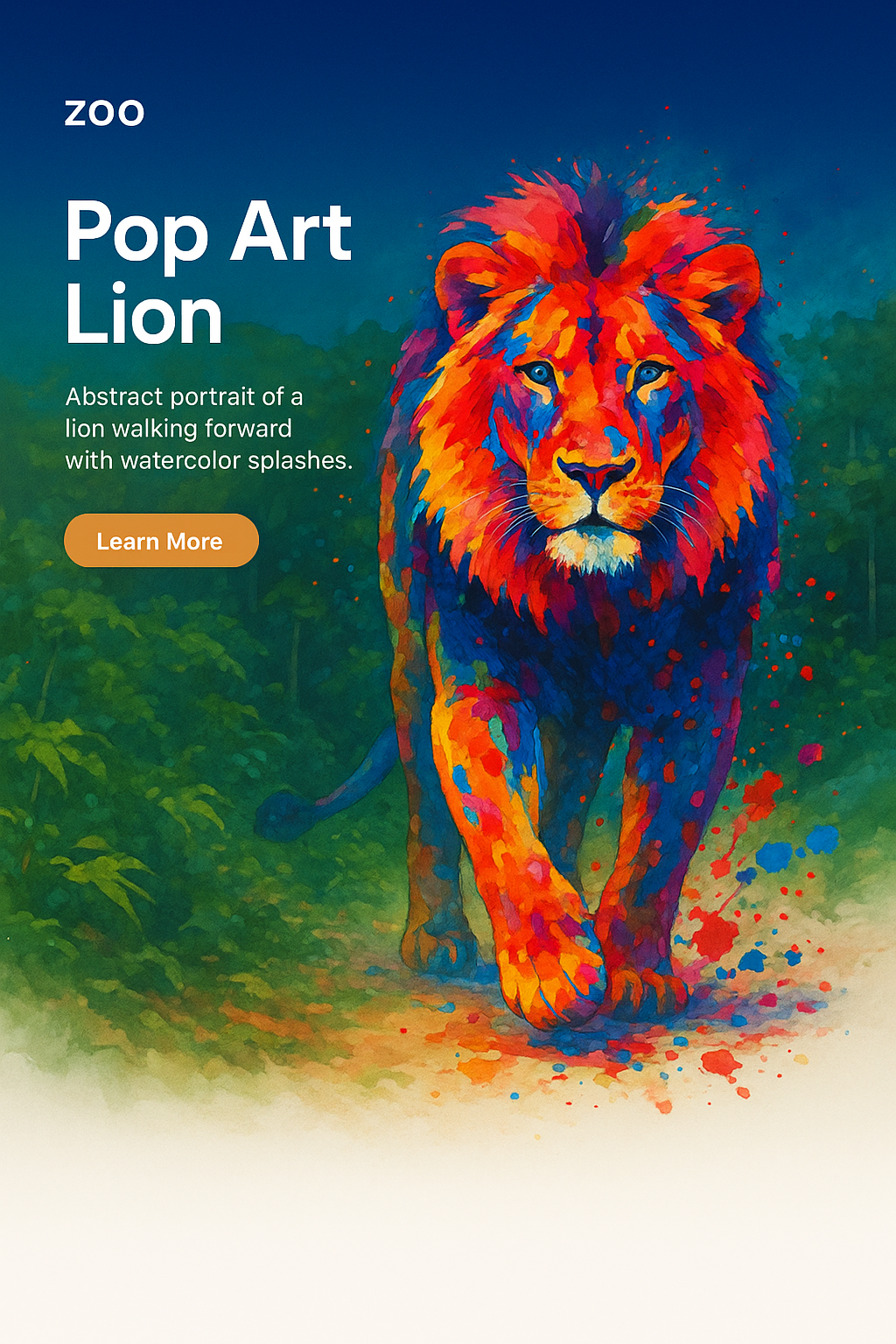 Vibrant Pop Art Lion Portrait with Watercolor Effects
