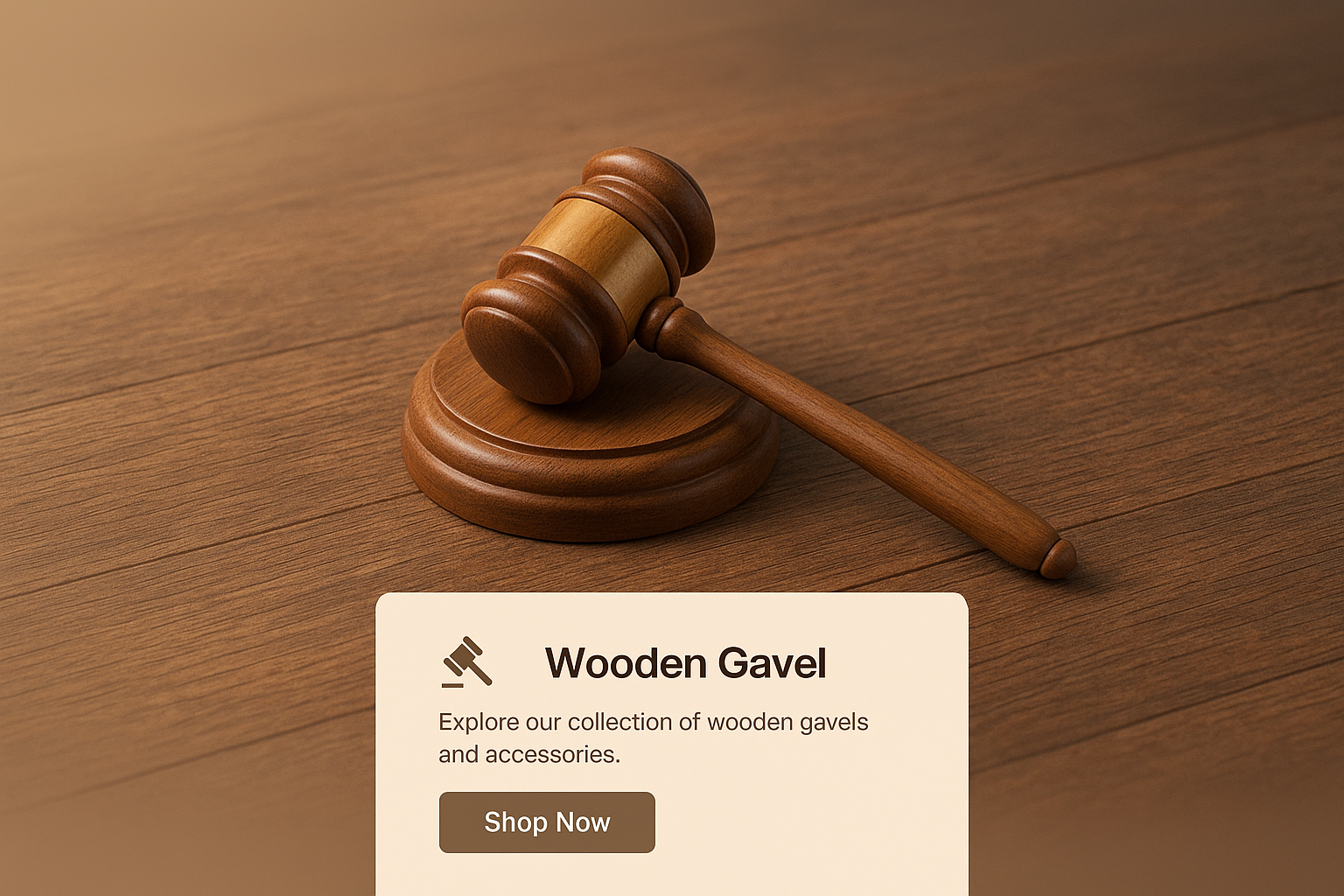 Elegant Wooden Gavel on a Warm Wooden Surface