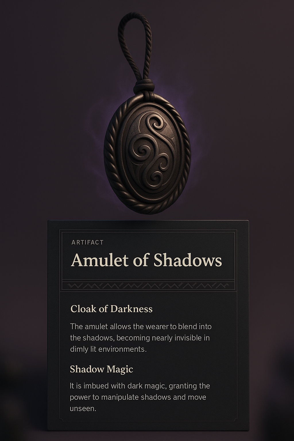 Amulet of Shadows: Dark Magic Artifact for Stealthy Maneuvers