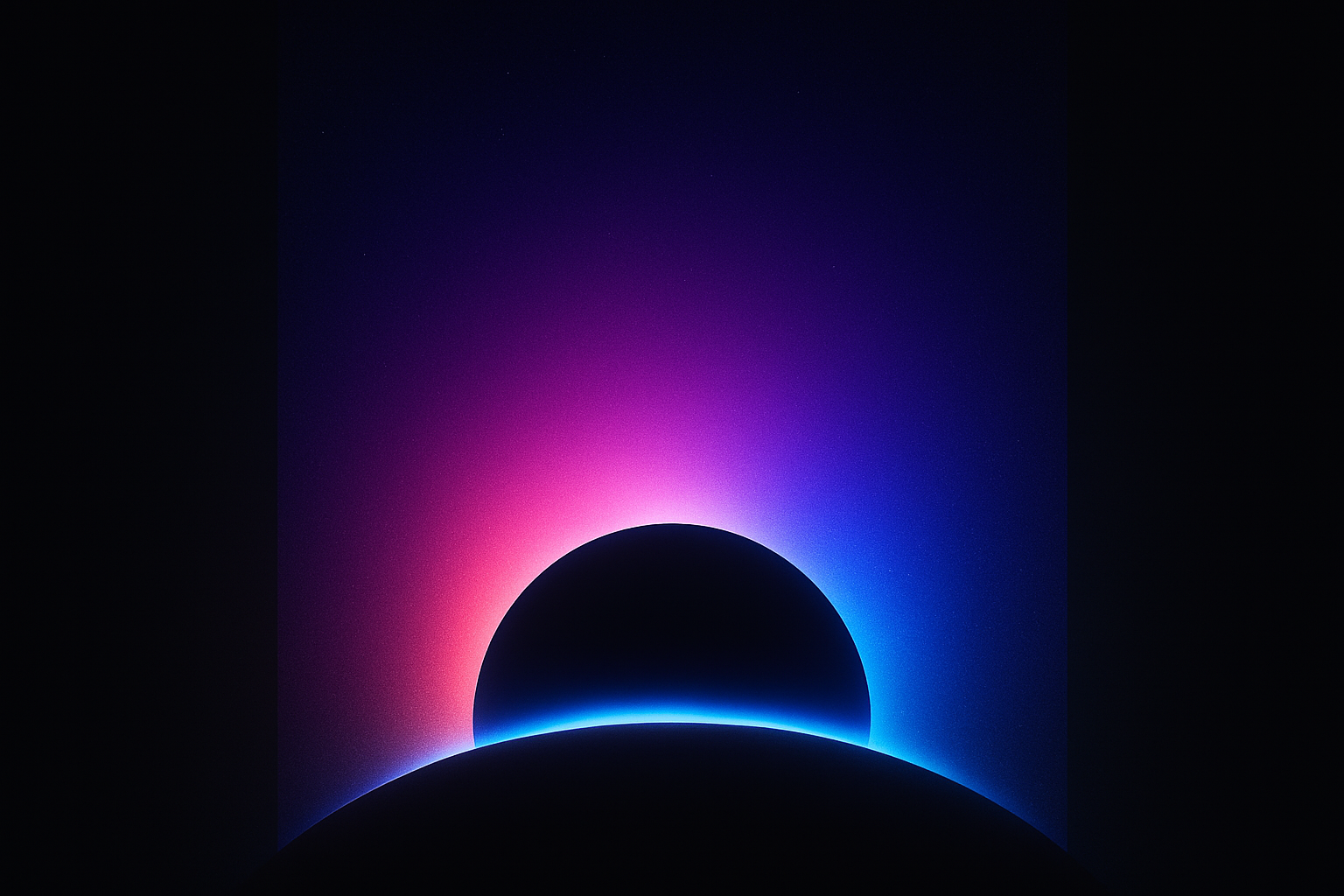 This image features a vibrant, glowing horizon set against a dark space backdrop. The silhouette of the Earth is illuminated by a bright gradient of colors, creating a captivating visual effect.