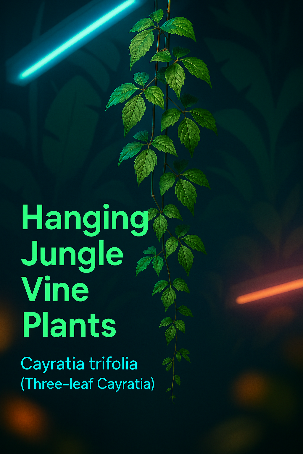 A vibrant illustration showcasing hanging jungle vine plants with neon accents, ideal for botanical-themed projects or nature-inspired designs.