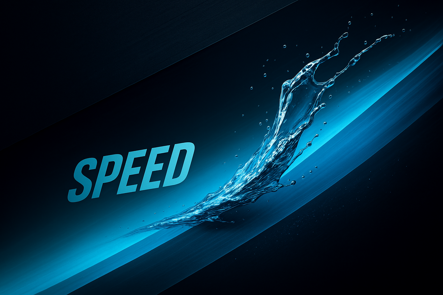 A visually striking image featuring a dynamic water splash against a dark background, accompanied by the word 'SPEED' in bold letters. The design conveys motion and elegance.