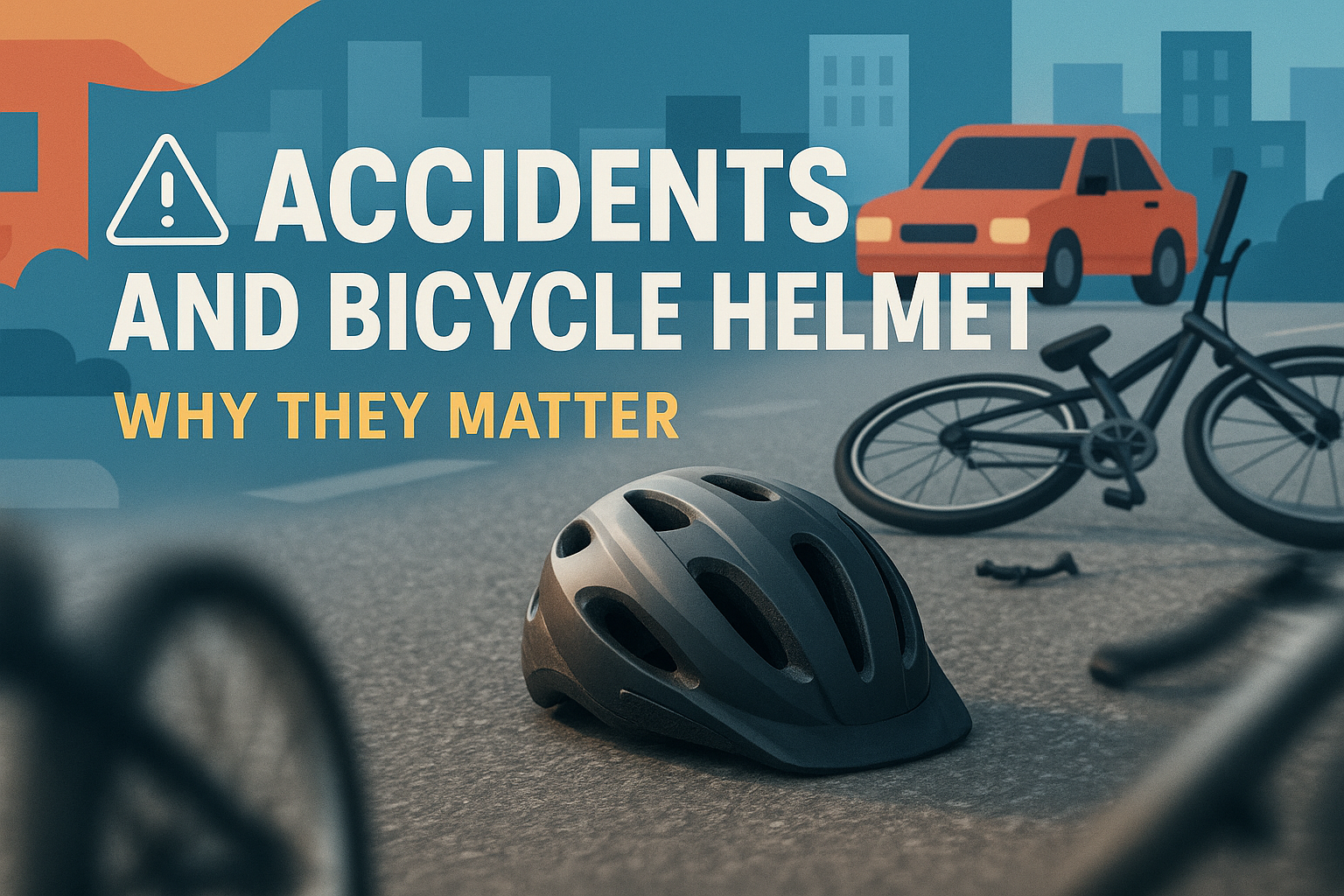 /Collection: /by davooda/Type: PNG/An engaging informational graphic highlighting the importance of bicycle helmets in preventing accidents. The design features a helmet and a bicycle against an urban backdrop, aimed at promoting safety awareness.
